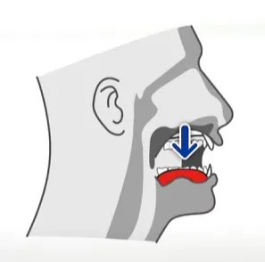 혀 전체는 구강 바닥에 붙이고, 혀 끝은 아랫니 뒤에 붙인 상태로 5초 동안 유지하기.